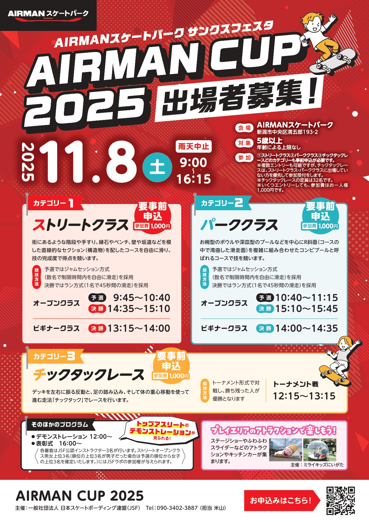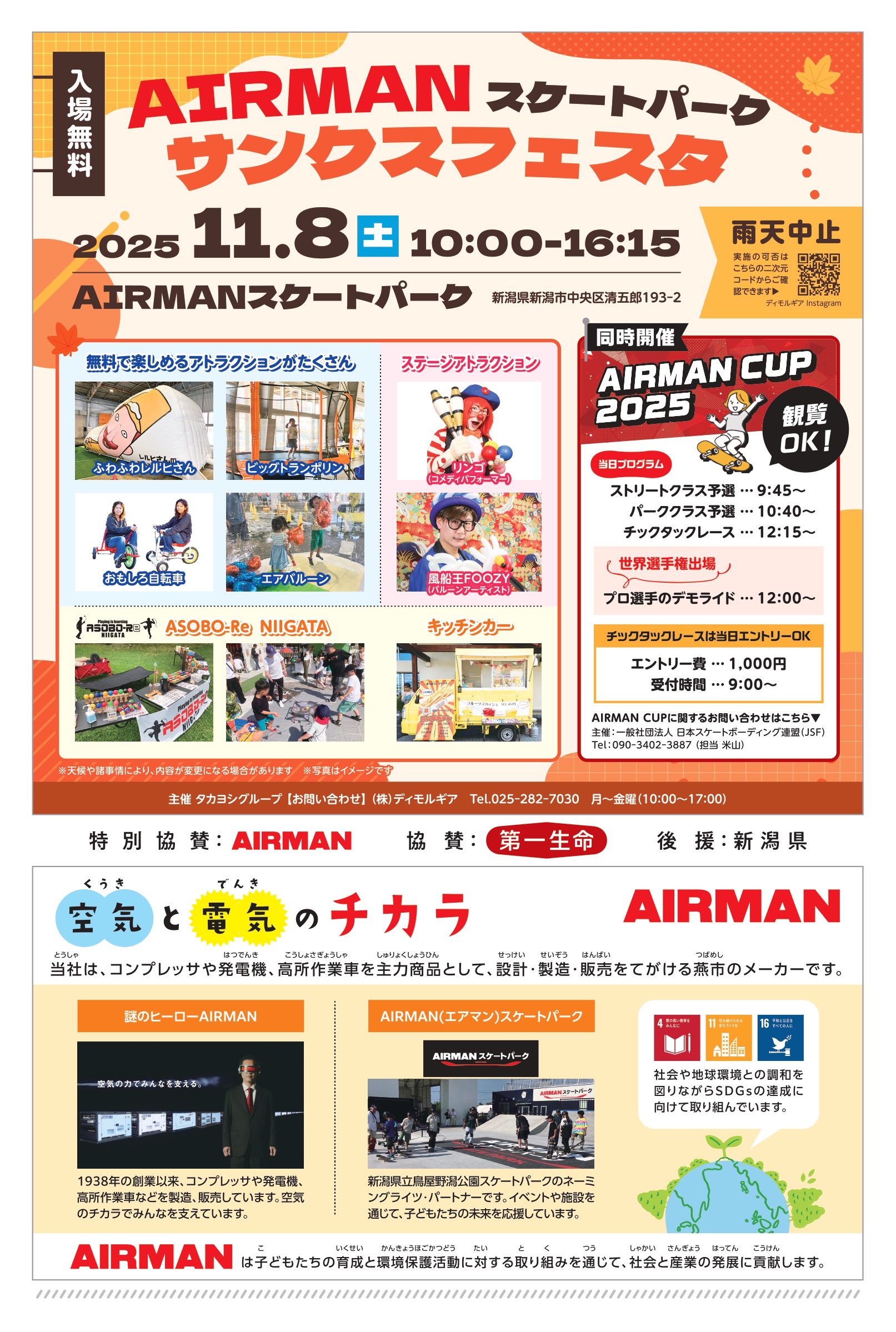 11月8日土曜日は、当施設で「AIRMANスケートパーク サンクスフェスタ」が開催されます